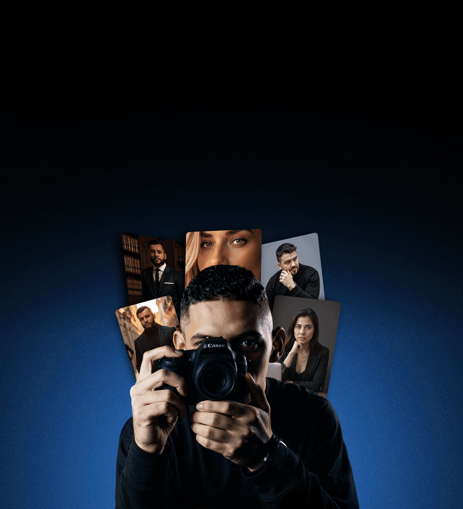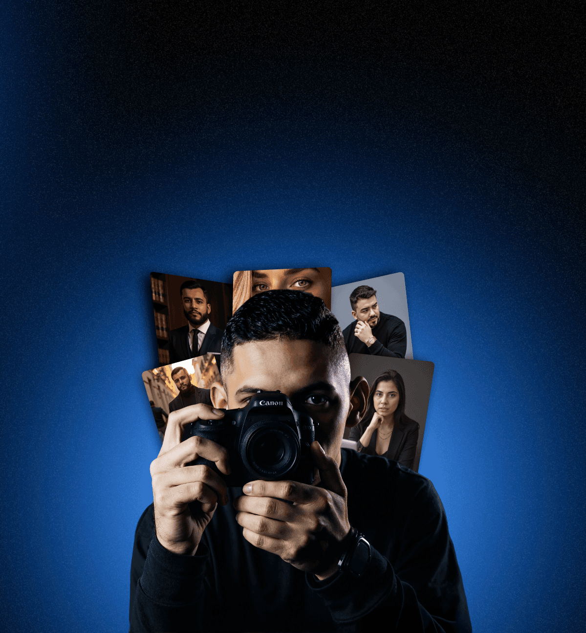 Você escolhe o visual: corporativo, externo, estúdio... e recebe fotos sob medida para sua necessidade.